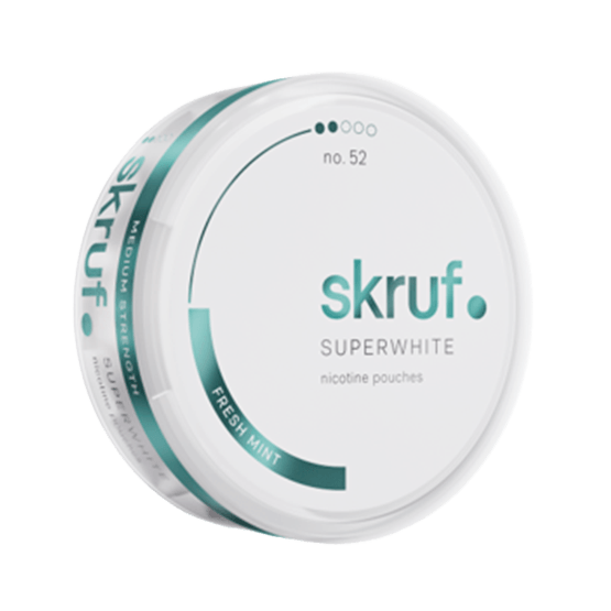 Skruf Superwhite No.52 Fresh Mint is a tobacco-free nicotine pouch from Skruf Snus. It comes in a slim format and delivers a fresh mint flavor without the inclusion of tobacco.
