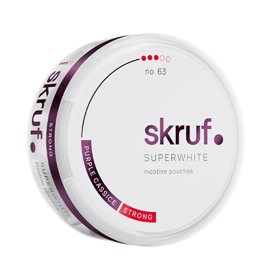 Skruf Superwhite No.63 Purple Cassice Strong is a tobacco-free nicotine pouch from Skruf Snus. It falls under the white snus category and comes in a slim format. While it does not contain tobacco, it delivers nicotine, providing a satisfying experience.
