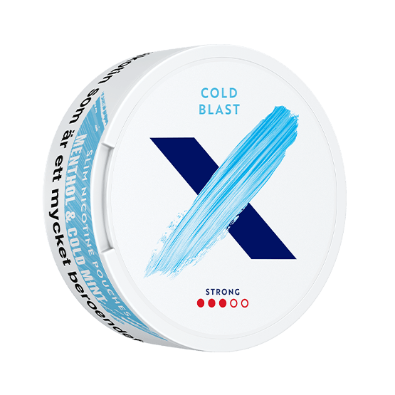 X Cold Blast Slim Strong is classified as strong and contains 13 mg of nicotine per gram, equivalent to 9 mg of nicotine per portion. It comes in a slim format for a comfortable and discreet fit under the lip. Each can contains 24 slim portions.